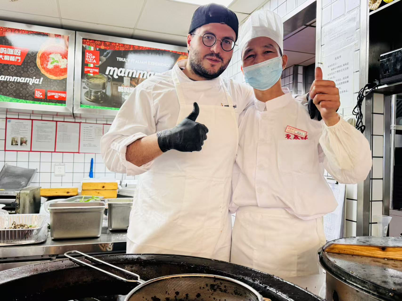东泰祥的生煎师傅和MAMMAMIA!的披萨师傅在东泰祥爱琴海店的厨房里争分夺秒地切磋,同时亦在狭小空间内紧密合作,为各位评委和媒体贵宾制作正宗美味的传统上海小吃生煎和传统拿波里小吃披萨。