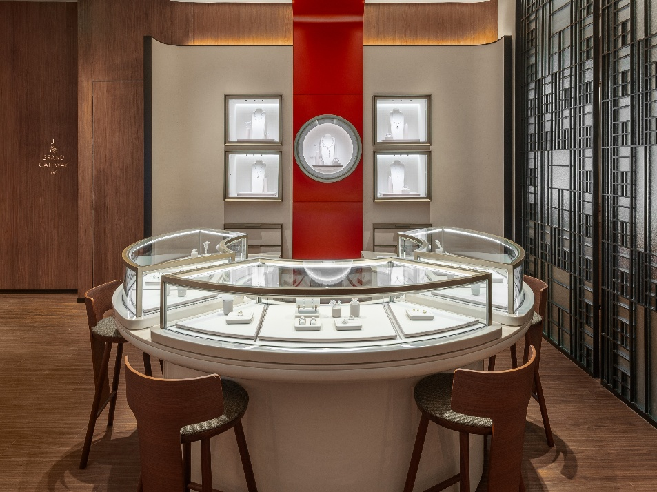 全新形象店特设贵宾区,让顾客在从容甄选珠宝的同时,也能享有兼具私密性与仪式感的专属空间。黄铜“福”纹屏风自然勾勒出过渡边界,水墨雅韵与静谧气息为空间营造清雅氛围,使顾客在尊贵儒雅的东方美学意境中,享受一场沉浸式的尊享品鉴。与此同时,周大福也将深厚的品牌故事,细腻融入消费体验的每一个触点,让顾客在购物中感受到属于品牌独有的温度与情感连接。