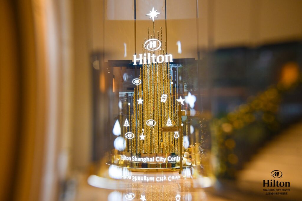 2025 年 12 月 5 日晚,上海城中希尔顿酒店以一场充满浪漫与仪式感的 「城中专列 · 圣诞绮旅」点灯仪式暨客户答谢晚宴,正式揭开今年圣诞季的序幕。当晚,酒店大堂的金色圣诞树随着灯光缓缓亮起,璀璨光影在空间中层层铺展,勾勒出节日的温暖轮廓。它以闪耀金色取代传统圣诞树的红绿配色,灵感来自旅途中被光照亮的轨迹,象征启程、勇气与希望,瞬间成为整晚最具标志性的节日印记。